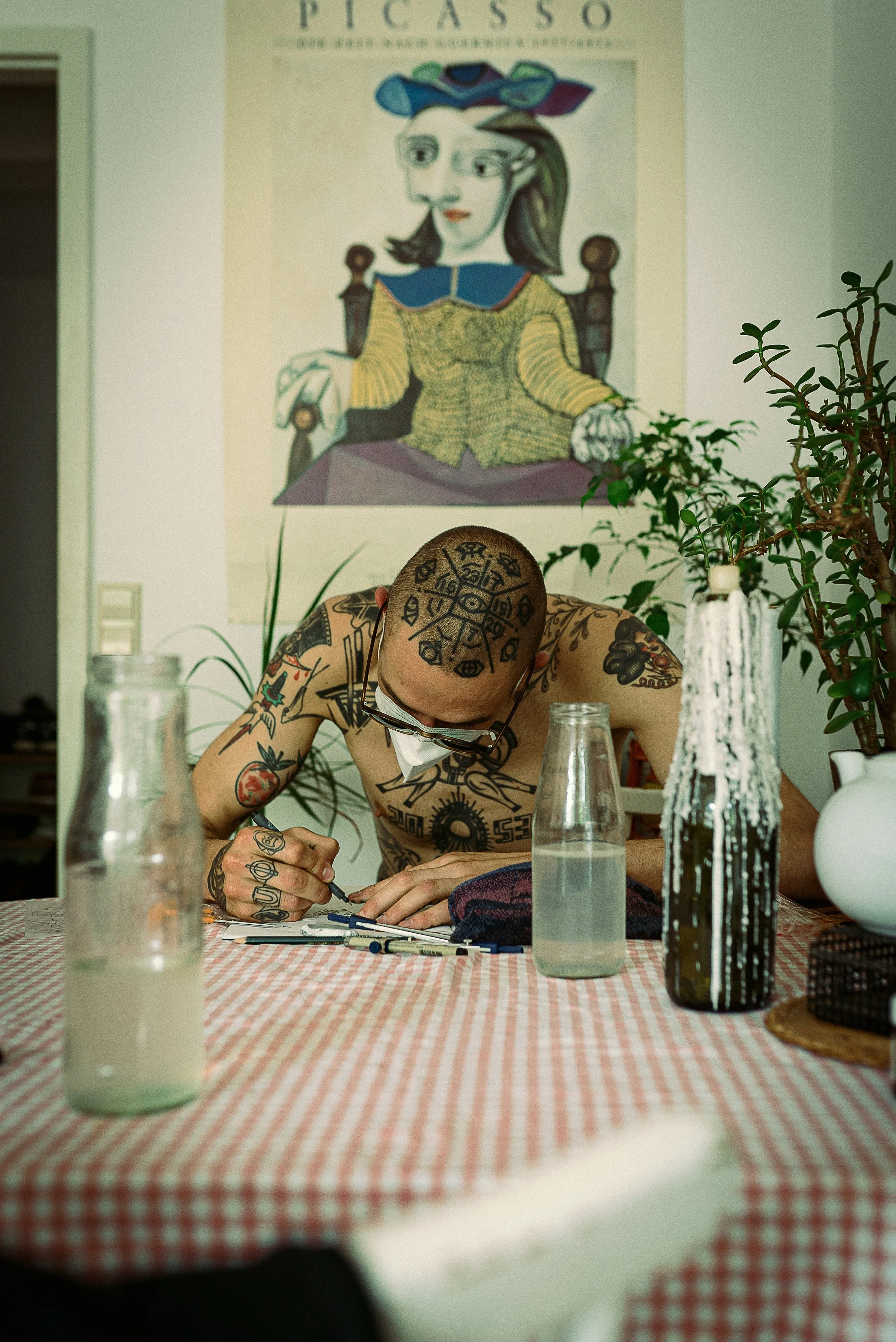 Mantas gets his INFLUENCES FROM GRAFFITI AND TRADITIONAL tattoos.